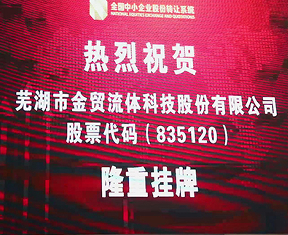 熱烈祝賀蕪湖金貿流體科技有限公司在新三板成功上市